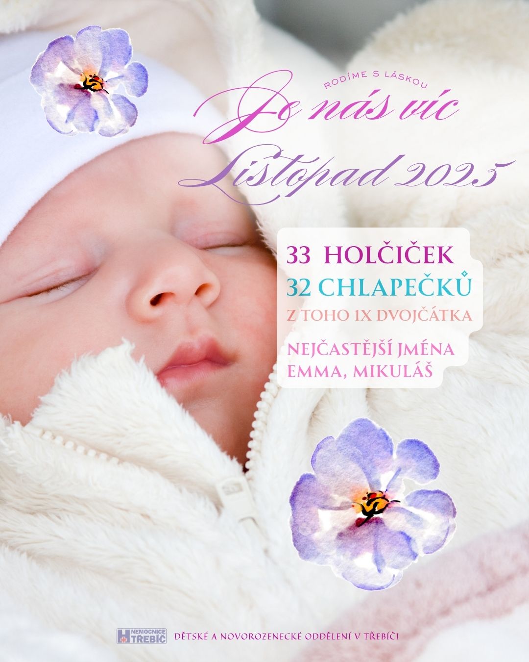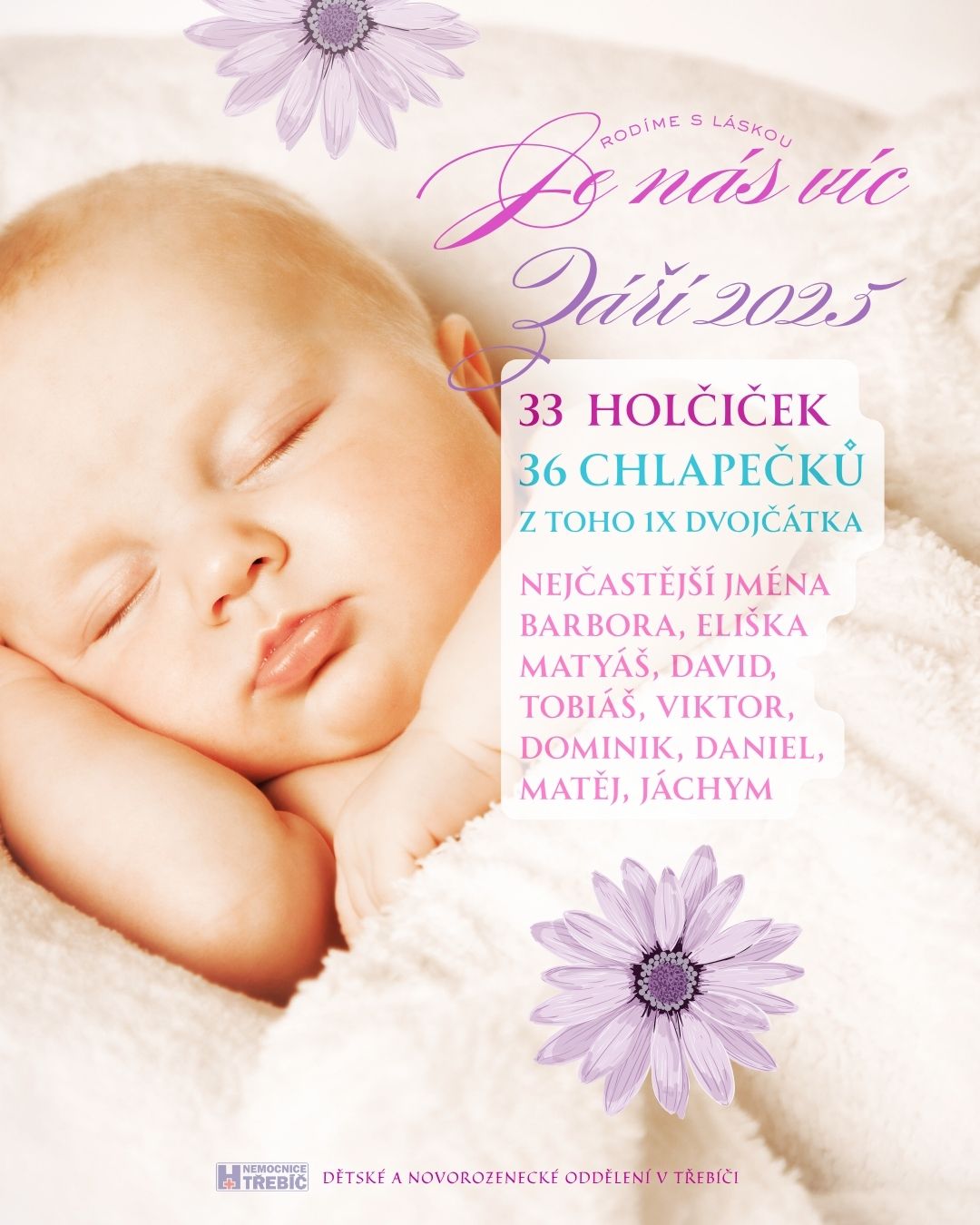 Počty holčiček a chlapečků narozených v třebíčské nemocnici naleznete právě zde...