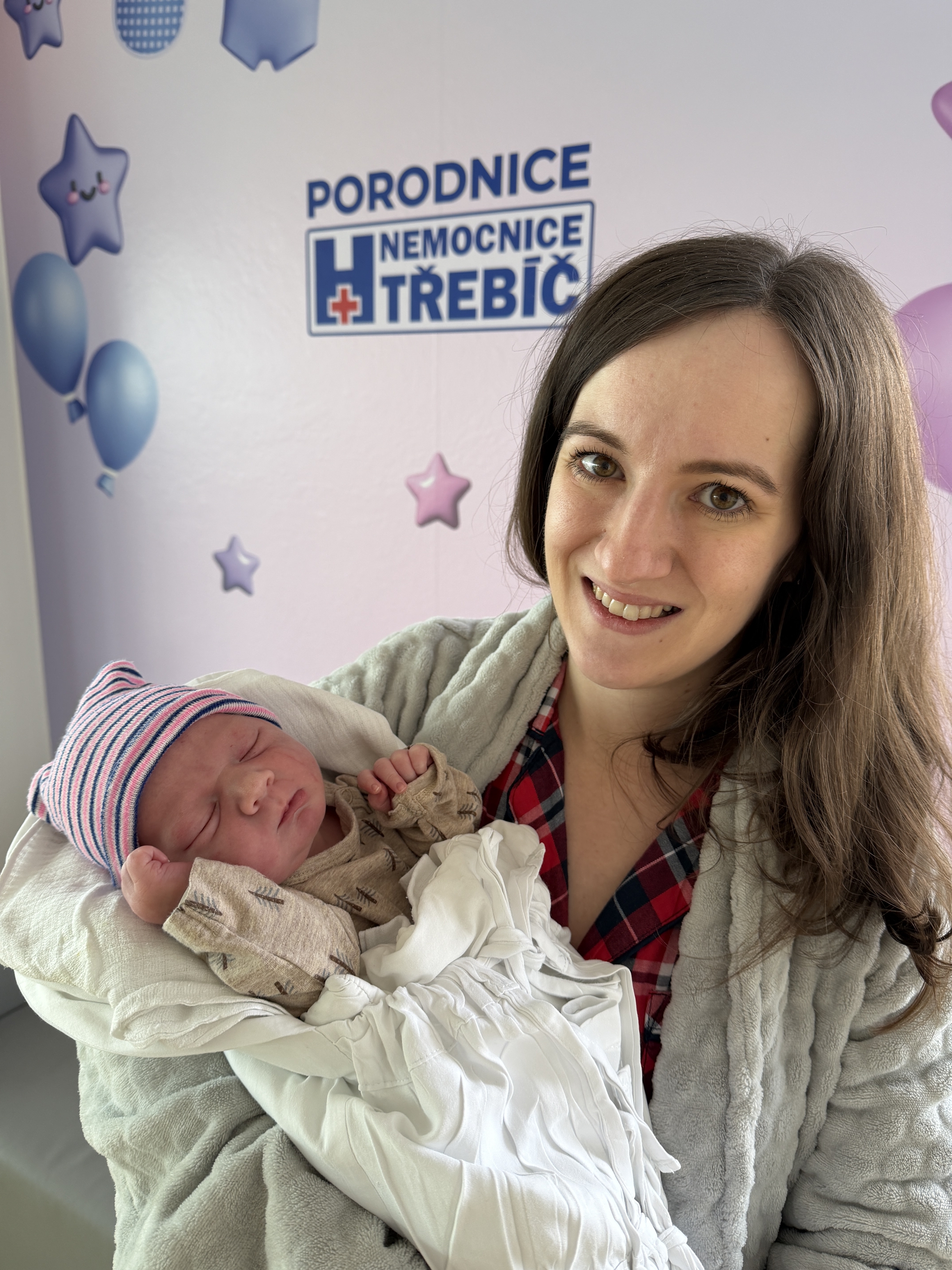 Šťastnou maminkou je naše paní doktorka Klára Šípová z kožního oddělení. Jakoubek je prvním miminkem města Třebíče narozeným v roce 2026.