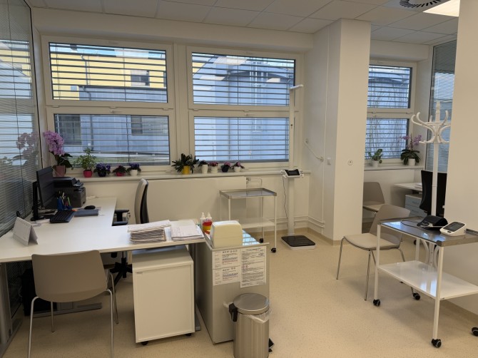 Nově vzniklé ambulance jsou rozmístěny podél vnitřní chodby, která je nyní díky architektonickému řešení prosvětlena přirozeným denním světlem. Toho bylo dosaženo instalací skleněných nadpraží nad dveřmi jednotlivých ordinací, kterými světlo proniká i do vnitřních částí traktu. Celý prostor je navíc vybaven moderním LED osvětlením s teplotou barev odpovídající dennímu svícení. Pacienti mají k dispozici čekárnu před každou ambulancí, moderní vyvolávací systém a kompletně nové sociální zázemí, které zahrnuje toalety pro muže, ženy i bezbariérové WC.