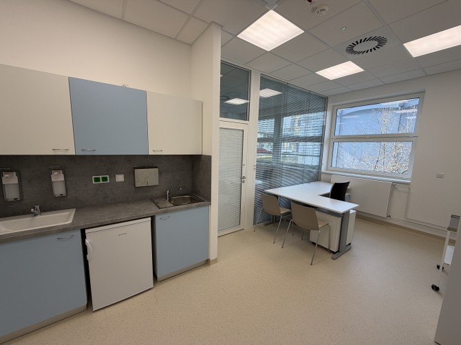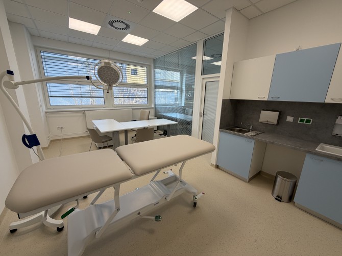 Nově vzniklé ambulance jsou rozmístěny podél vnitřní chodby, která je nyní díky architektonickému řešení prosvětlena přirozeným denním světlem. Toho bylo dosaženo instalací skleněných nadpraží nad dveřmi jednotlivých ordinací, kterými světlo proniká i do vnitřních částí traktu. Celý prostor je navíc vybaven moderním LED osvětlením s teplotou barev odpovídající dennímu svícení. Pacienti mají k dispozici čekárnu před každou ambulancí, moderní vyvolávací systém a kompletně nové sociální zázemí, které zahrnuje toalety pro muže, ženy i bezbariérové WC.